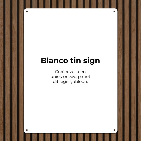 Gebruik dit volledig lege sjabloon Metalen bord Blanco 30x40cm om jouw unieke metalen bordje helemaal naar wens te ontwerpen in onze handige en gebruiksvriendelijke ontwerpmodule. Laat je creativiteit de vrije loop en maak een ontwerp dat perfect past bij jouw stijl, interieur of gelegenheid.